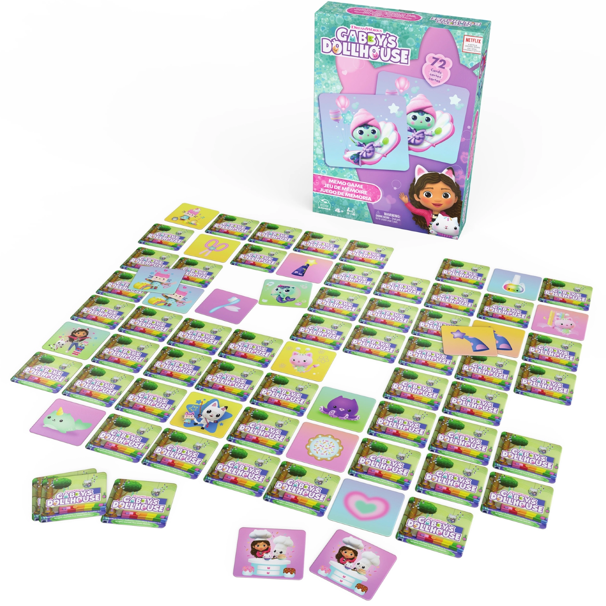 Spillet er en fantastisk gaveidé til små fans af Gabby og hendes kattevenner. Det er bare at blande, lægge kortene ud og begynde jagten på par!