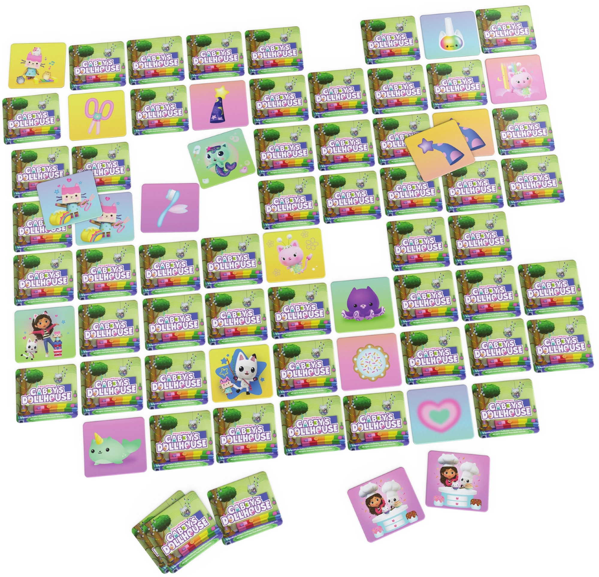 Træd ind i den magiske verden i Gabbys kattedukkehus og nyd den spændende jagt på par. Hvert fundet matchende par giver ét point og bringer dig tættere på sejren. Smukt udførte illustrationer glæder både børn og voksne og forvandler hvert spil til en fælles, glædesfyldt oplevelse.