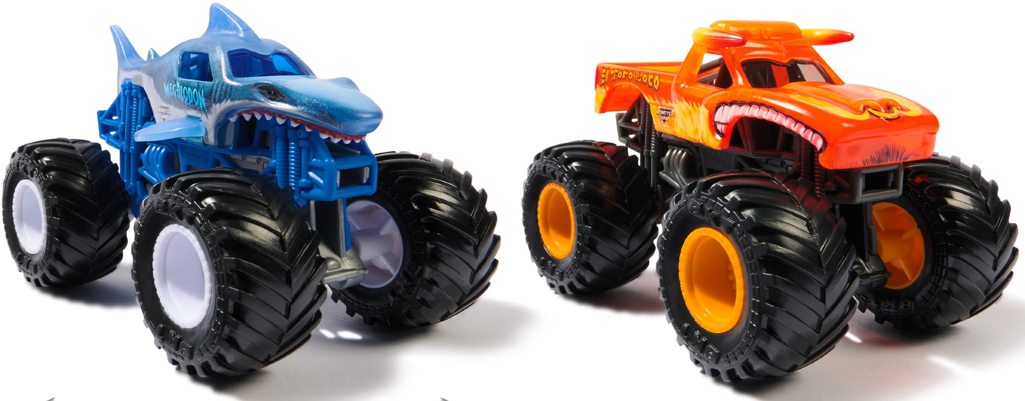 Den kraftige launcher sender truckene afsted, så de sikkert klarer hop, opstigninger og skarpe sving – perfekt til løb med to køretøjer.