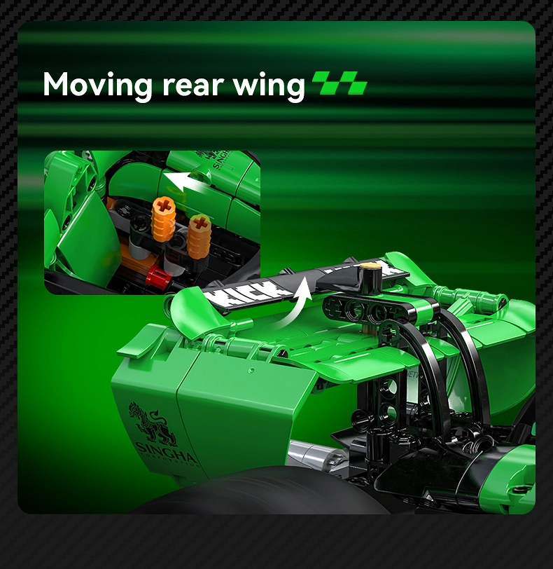 Dette byggesæt vil glæde teknikentusiaster og samlere. Den præcist udførte F1-racer gengiver trofast aerodynamiske former, Halo-system, detaljeret cockpit og markante Pirelli-dækprint – alt takket være permanent tryk på delene uden behov for klistermærker. Den robuste konstruktion og gennemtænkte byggeetaper sikrer en opslugende byggeoplevelse.