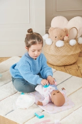 Børn kan øve at pusle, rede hår og “pleje” dukken med tilbehør, der ligner det ægte – ideelt til at udvikle empati og rolleleg.