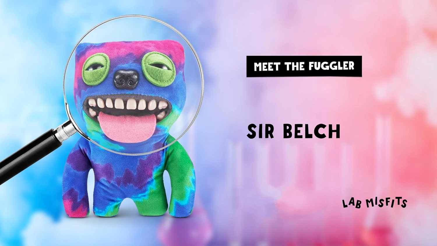 Plysdyr-figuren FUGGLER Sir Belch er et ikon i serien Laboratory Misfits – en ustyrlig blanding af farver, grimasser og humor, der straks fanger opmærksomheden. Det uforvekslelige udtryk med tungen ude og iøjnefaldende tænder skaber en unik stil, som fans af utraditionelle legetøj vil elske.