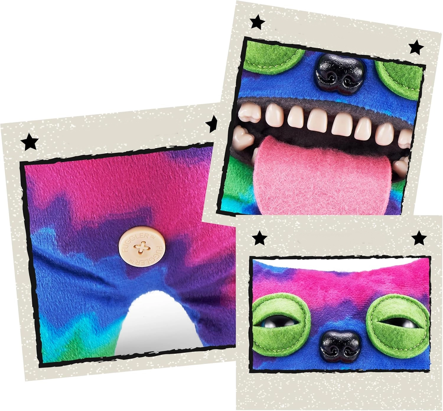 Oplev en skørt skæv plysbamse fra serien FUGGLER fra Spin Master – den farverige “Sir Belch”, kendt som Hr. Spasmager. Denne kærkomment mærkelige makker har opspilede øjne, fremviste tænder og tungen ude, hvilket gør den til en original gave og et samlerobjekt for både børn og voksne. Den bløde krop med tie-dye mønster indbyder til at kramme, lege og stille frem på hylden.