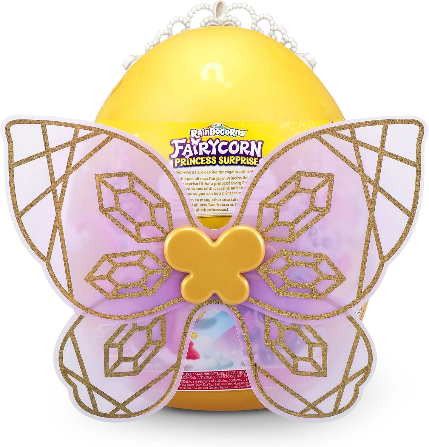 - Æg med plysfairycorn, tiara, tryllestav, aftagelige vinger, Boo‑Boocorn, 35+ små overraskelser og tilbehør