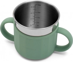 Silikonekop 2-i-1 NEW BABY grøn er et godt valg til at lære at drikke. Kombinationen af 50 % silikone og 50 % rustfrit stål sikrer sikkerhed, holdbarhed og nem vedligeholdelse, mens den bløde tud og silikonesugerøret er skånsomme mod barnets gummer. Den transparente midtersektion og indvendige markeringer op til 220 ml gør det nemt at kontrollere mængden af drikke.