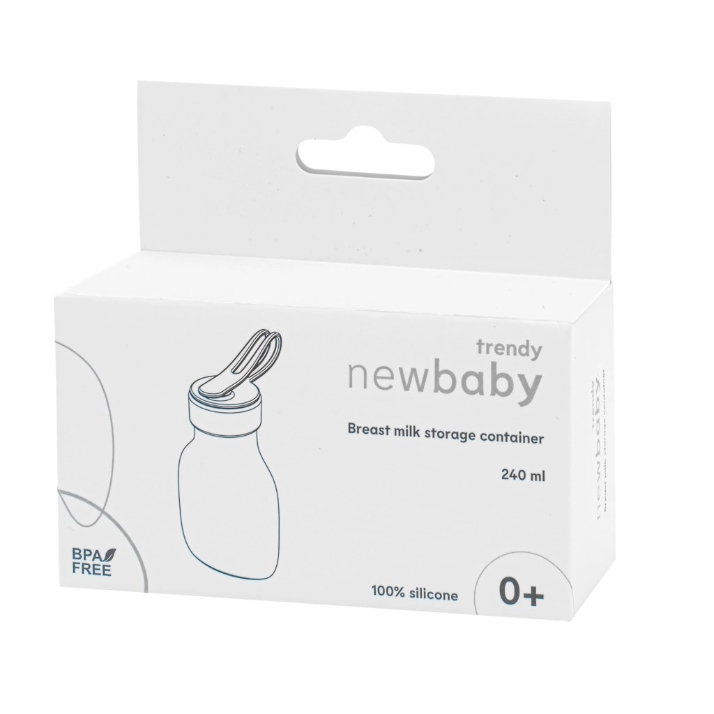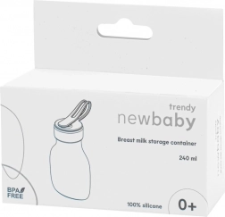 Silikonebeholderen til modermælk NEW BABY fra Trendy-serien er designet til nem og hygiejnisk opbevaring af mælk fra fødslen. Den matte, delvist gennemsigtige krop med markeret måleskala i ml og oz muliggør præcis dosering, mens det riflede skruelåg med strop forhindrer lækager og gør transporten lettere.