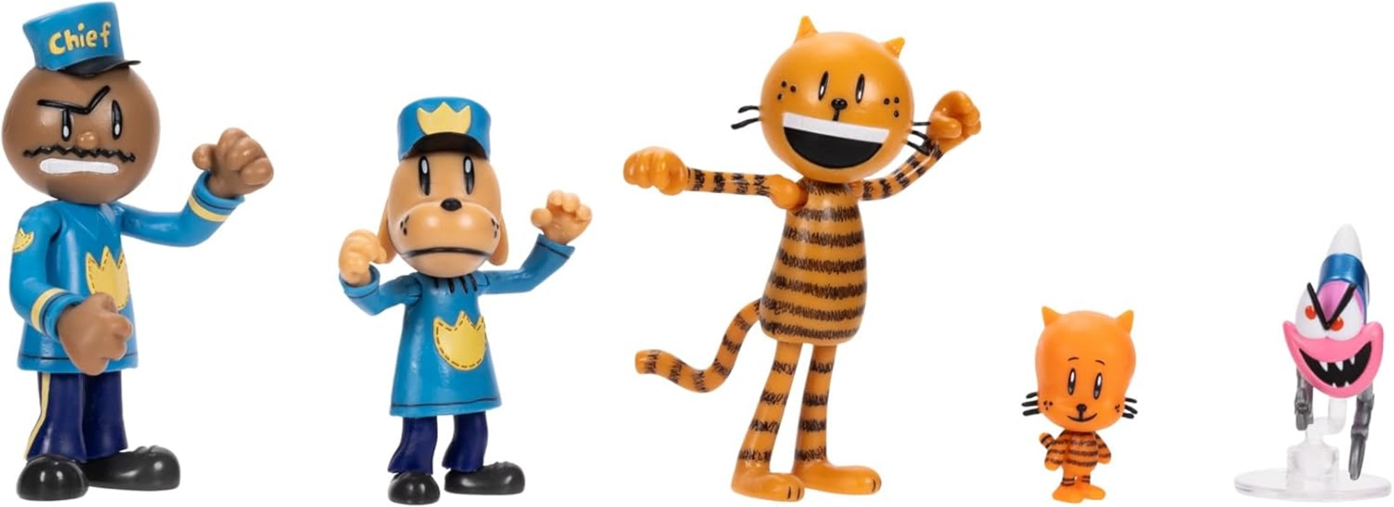 Sættet inkluderer Chief, Dog Man, Petey, Lil’ Petey og Flippy – den perfekte blanding af helte og skurk til at skabe dine egne historier.