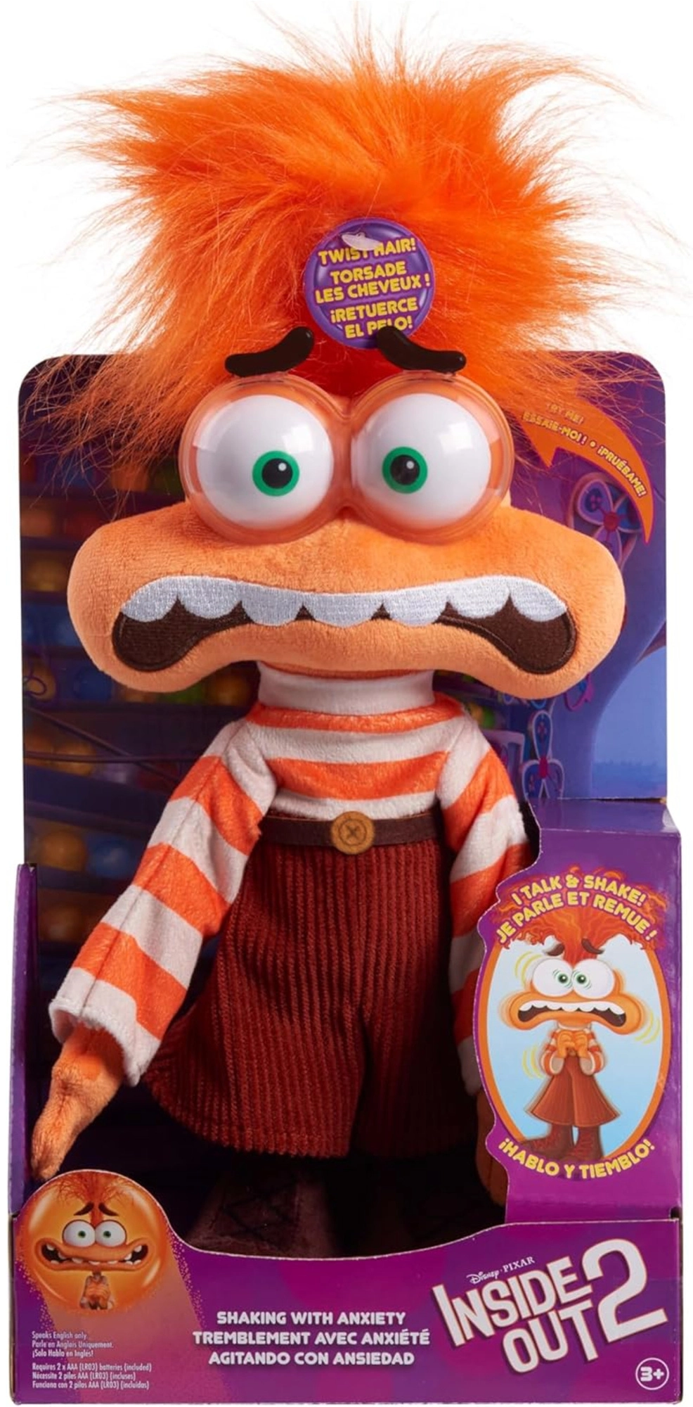 Den interaktive plysbamse Bekymring (Anxiety) kendes på de orange nuancer, de markante øjne og de pjuskede hår. Den er cirka 32 cm høj, dejligt blød og ideel til daglig leg og puttetid. Når du drejer hovedet, aktiveres rystefunktionen, og der afspilles populære filmreplikker på engelsk – en skøn kombination af underholdning og inspiration til fantasifuld leg.