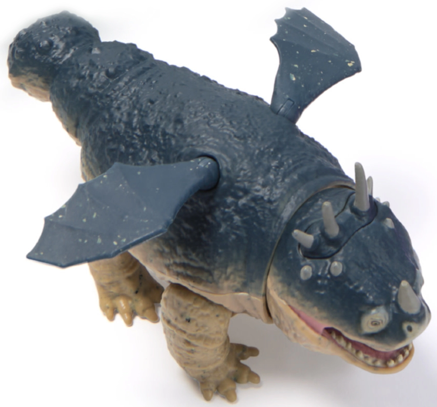 Den detaljerede tekstur af “stenede” skæl, horn og en åben gab med hugtænder refererer trofast til universet SÅDAN TRÆNER DU DIN DRAGE.
