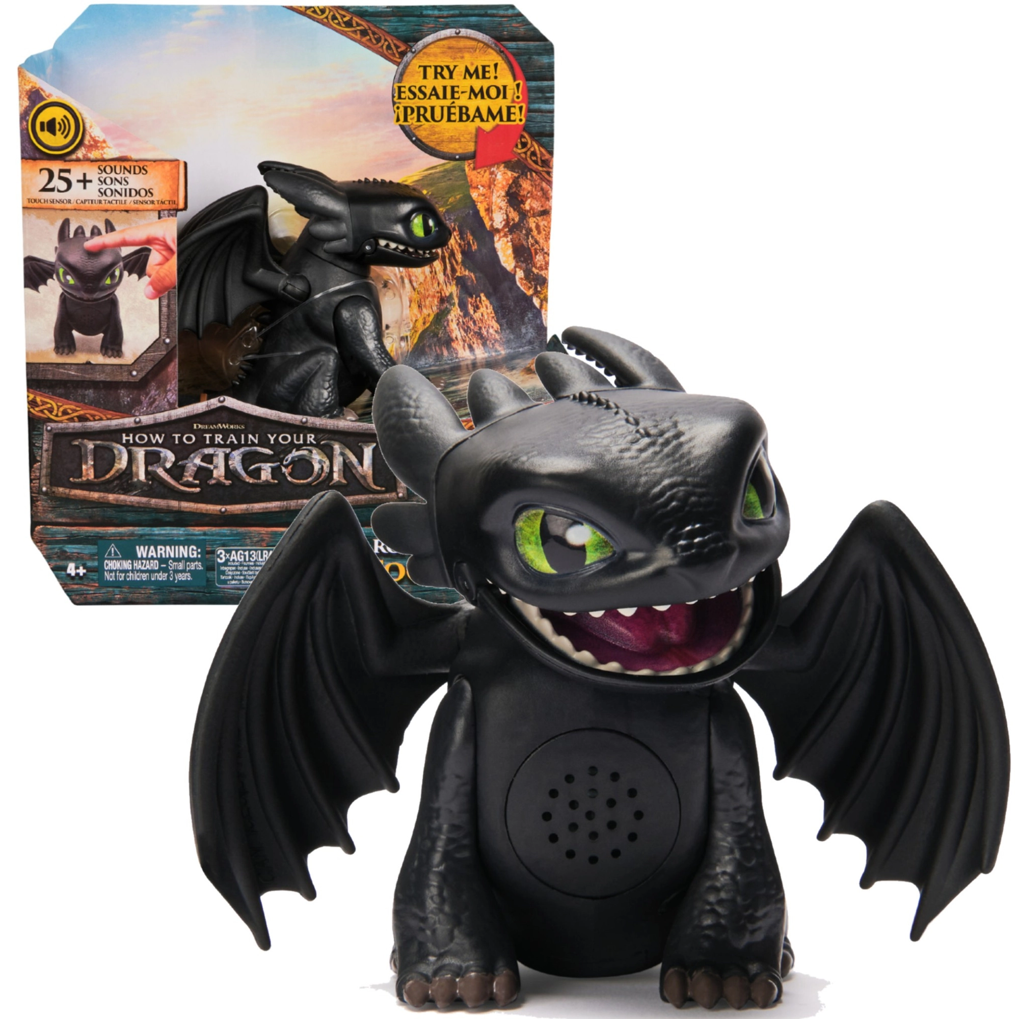 Den interaktive figur Sorthoved ROARING MINIS giver børn en autentisk oplevelse fra dragernes verden. Den sorte, detaljeret teksturerede krop med markante grønne øjne, karakteristisk hale og bevægelige vinger skaber et troværdigt portræt af den legendariske Natteskær. Berøring på hovedet aktiverer mere end 25 originale lyde og effekter inspireret af filmen, hvilket gør legen mere levende og medrivende.