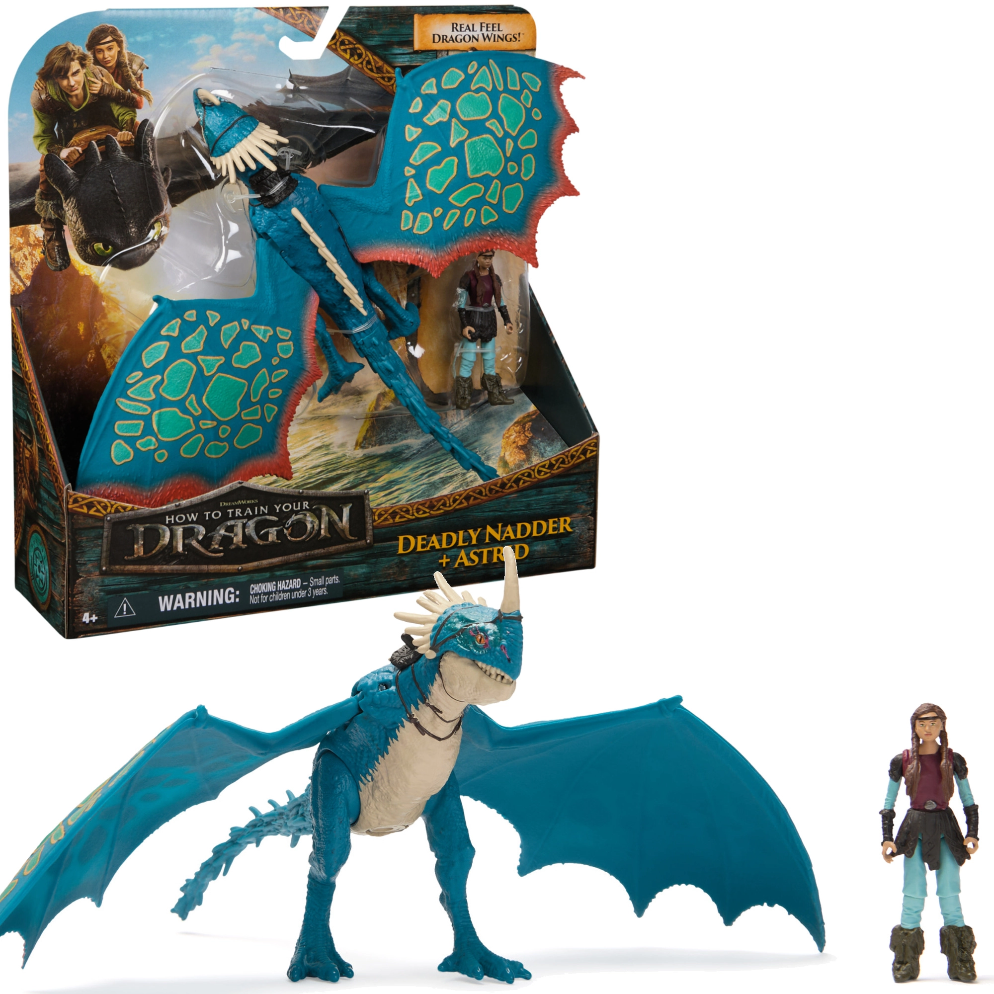 Oplev verdenen af Sådan træner du din drage med det autentiske sæt med dragefiguren Deadly Nadder og rytteren Astrid fra Spin Master. Detaljeret udførelse, bevægelige vinger og lemmer samt muligheden for at placere rytteren i sadlen giver dynamisk leg, kreativ historiefortælling og timevis af sjov.
