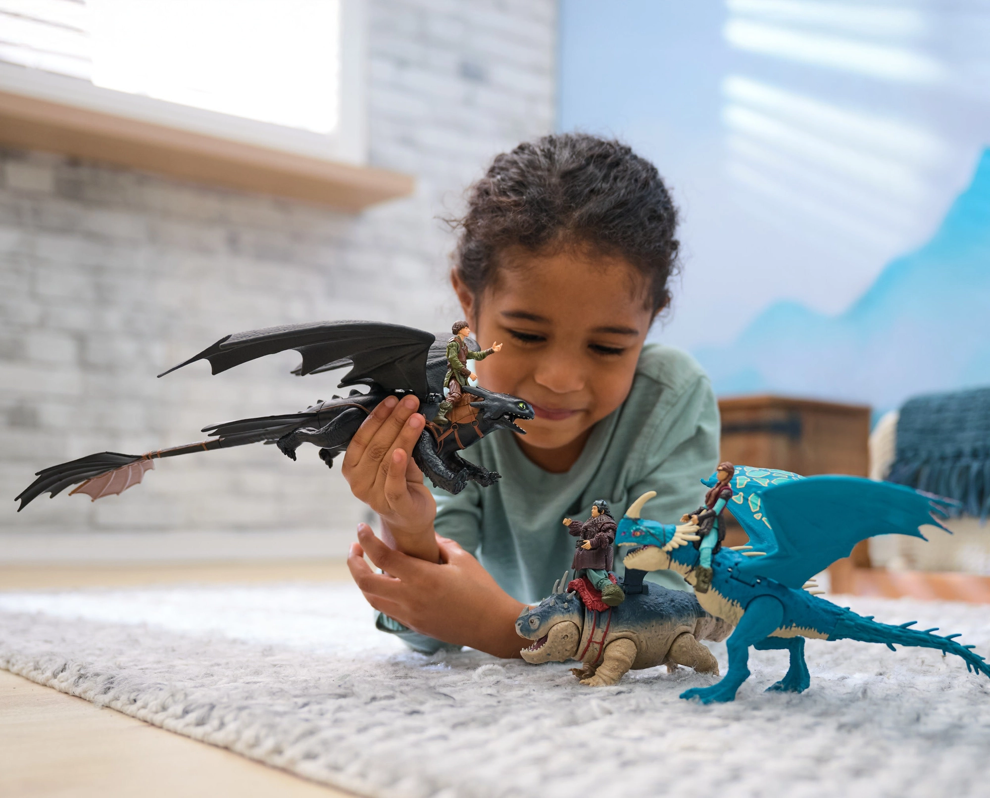 Det populære sæt fra DREAMWORKS Dragons-universet leverer filmægte udførelse med fokus på autentiske detaljer – fra “skæl”-tekstur til formstøbt sadel til rytteren. Takket være leddene kan dragens vinger foldes ud til “flyvning”, ben og hale justeres, og Astrid-figuren kan stilles med arme i dynamiske positurer.