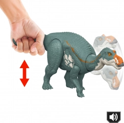 Figuren fra Mattel gengiver Maiasaura troværdigt med realistisk hudtekstur, markante farver og detaljeret udførelse. Takket være bevægelige led i ben, hals og hale kan du let indstille dynamiske positurer fra rolig gang til angreb. Styring via halen aktiverer et karakteristisk kæbeslag og et brøl, som forstærker de realistiske spilsituationer.