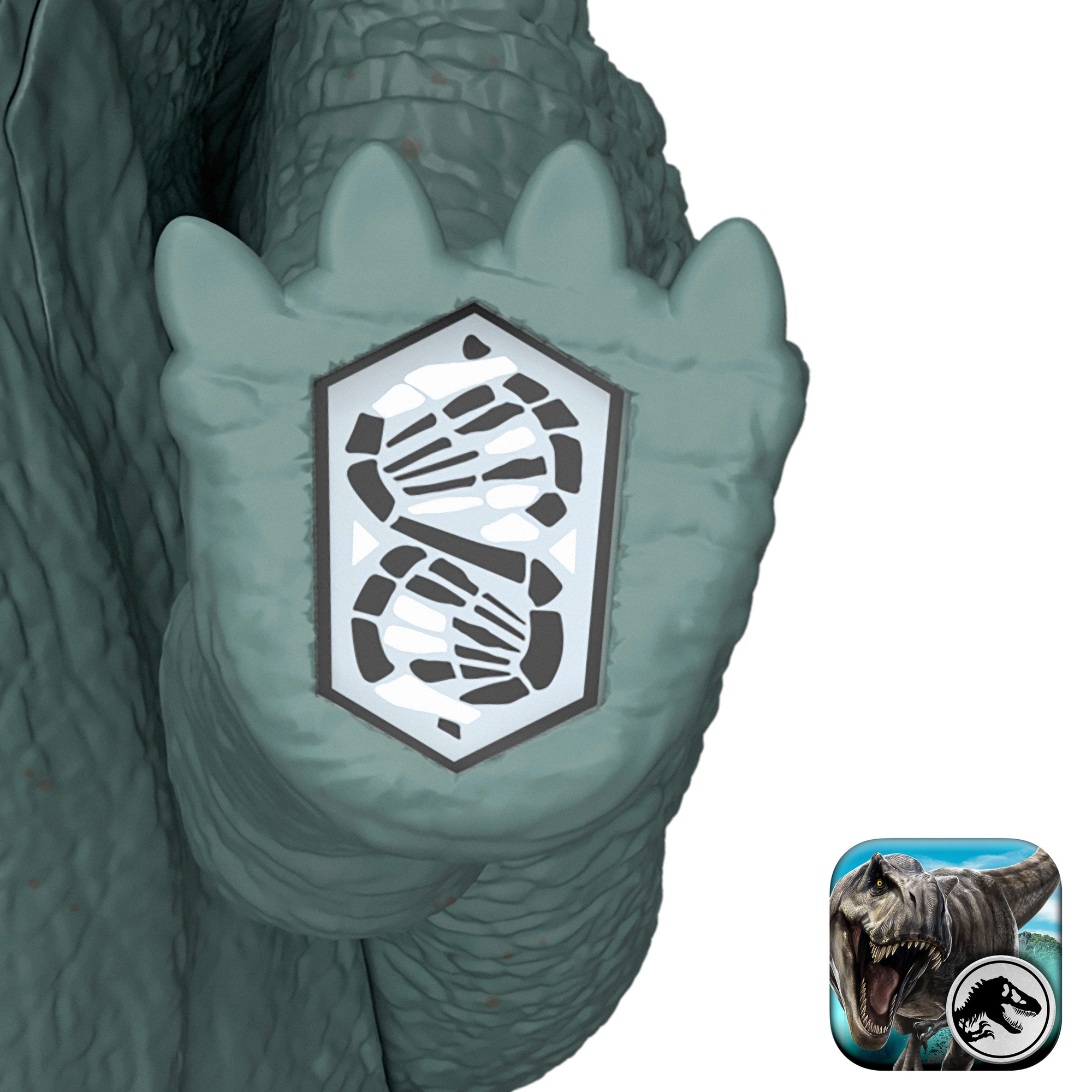 Den skjulte DNA-kode på figurens ben kan skannes i den gratis app Jurassic World Reborn: Facts (Android/iOS). I AR-miljøet kan du udforske en skeletmodel i røntgentilstand, termisk visning og læringsindhold samt nyde minispil som kapløb med dinosaurer og fossiljagt.