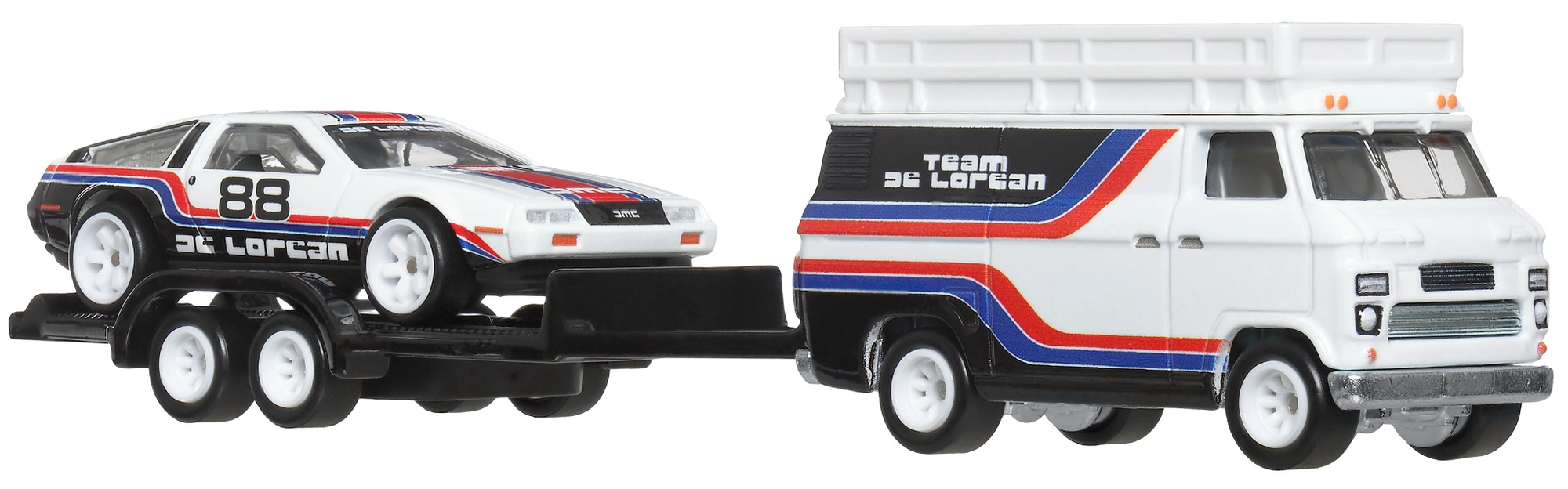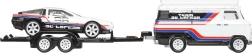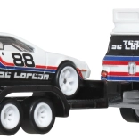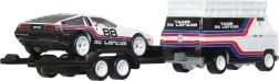 Nyd førsteklasses udførelse og raceratmosfære med transportsættet Team DeLorean. Den hvide trækker med trailer transporterer sportsvognen DMC DeLorean #78 i sort-hvid farvekombination med røde og blå striber. Sættet er klar til udstilling og leg med det samme – tag det blot ud af æsken og kør på banen.