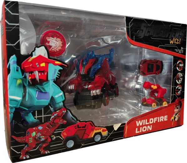 Tag på mission og stop Ronan! Screechers Wild! Wildfire Lion-sættet kombinerer effektfuldt look, gennemtænkte funktioner og timers sjov. Figurerne transformeres nemt: dinosauren bliver til en rød varevogn, og løven til et større pansret køretøj. De iøjnefaldende neonfarver fanger opmærksomheden med det samme.