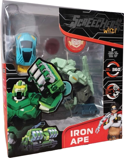 Oplev den futuristiske verden Zephyr City, og slut dig til heltene, der ved hjælp af transformerende køretøjer kæmper om energimønter. Figuren IRON APE skifter lynhurtigt fra abe til en aerodynamisk bil, så du altid er klar til næste mission. Klare farver og neon-detaljer fanger blikket med det samme.