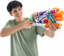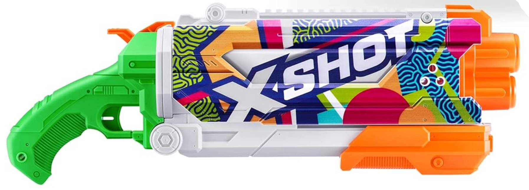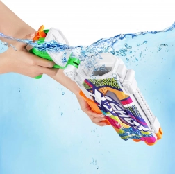 Vandpistolen ZURU X-SHOT Skins Fast-Fill Ripple løfter vandkampe til et højere niveau. Med Fast-Fill-teknologien fylder du tanken på ét sekund – åbn, sænk ned, luk, og du er tilbage i spillet. Længden på 49 cm giver fremragende greb, stabilitet og ydeevne til præcise træffere.