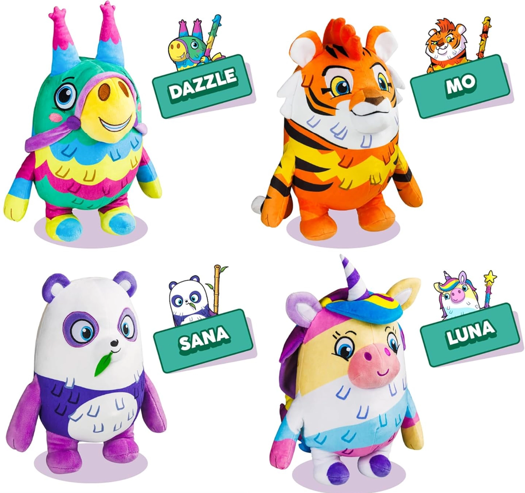 Oplev den farverige verden af Piñata Smashlings, hvor søde, energifyldte væsner springer ud af regnbue-piñataer! Den plyssede tiger Mo i en dyb orange farve har en blød tekstur, et venligt udtryk og er som skabt til daglig glæde. Takket være det behagelige materiale er den velegnet til at kramme, lege med og som pynt på børneværelset.