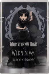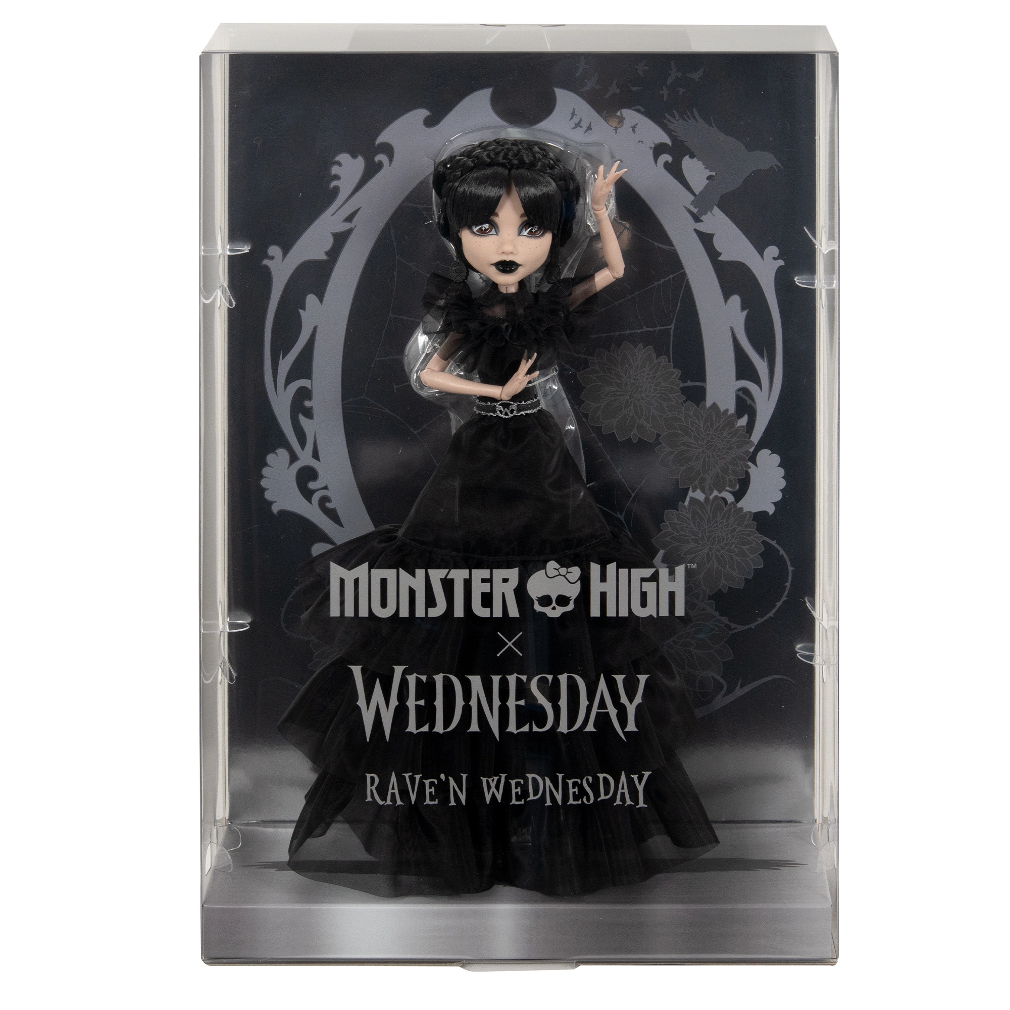 Denne samlertøjdukke WEDNESDAY ADDAMS fra Monster High-serien gengiver den elskede heltinde troværdigt. Lange sorte fletninger, lys hud og et gennemtrængende blik fuldendes af en dramatisk sort tylkjole med rige flæser og en stander til sikker udstilling i vitrinen.