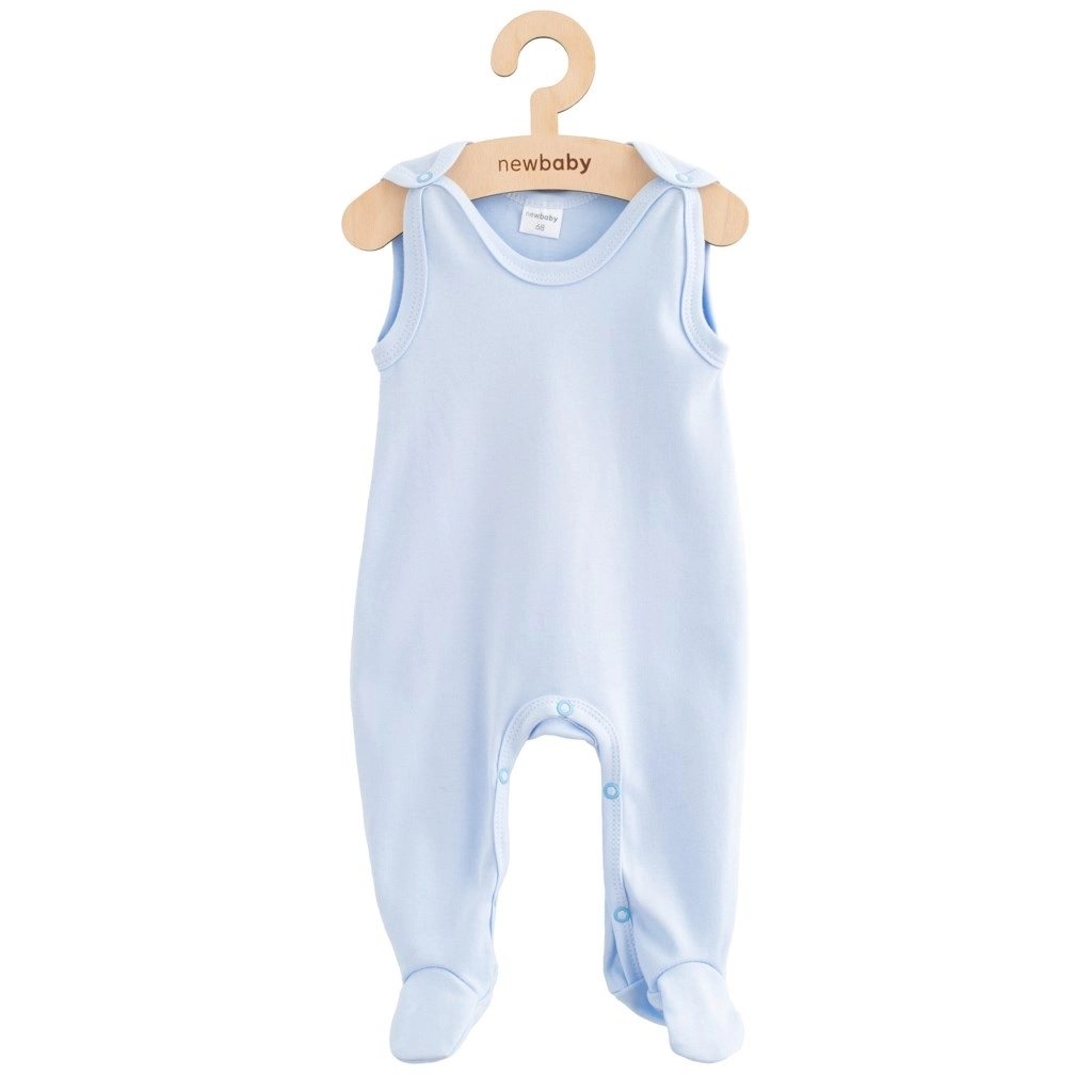 Komfortabel babyheldragt NEW BABY Classic II i blå farve lavet af blød 100% bomuld. Blødt og åndbart materiale sikrer komfort hele dagen, og praktisk trykknaplukning på skulderen og mellem benene gør både påklædning og bleskift lettere. Certificeringen OEKO‑TEX Standard 100 bekræfter sikkerhed for sart babyhud.