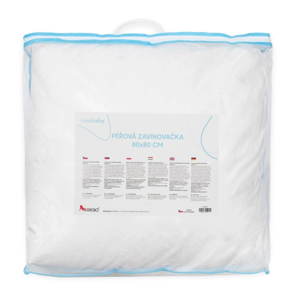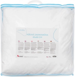 Denne luksuriøse dundrage i størrelsen 80 × 80 cm er designet til sikker og behagelig indsvøbning af nyfødte. Takket være særligt rensede og testede dun bevarer den behagelig varme uden overophedning og giver barnet en følelse af tryghed. Den kan også bruges som et let dyneoverkast.