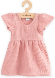 Disse sommerlige musselinkjoler fra New Baby vil glæde enhver lille modeentusiast. Takket være det lette og luftige stof er de maksimalt behagelige selv på varme dage. A-snittet er flatterende, og det rynkede skørt giver kjolen et legende udtryk.