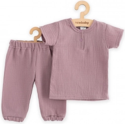 Oplev komfort og lethed med muslinsættet til de mindste. Det todelte NEW BABY sæt består af en T-shirt med korte ærmer og bukser i et moderne snit. Muslinbomuld er kendt for sin blødhed, luftighed og holdbarhed, hvilket gør det ideelt til daglig brug og hyppig vask.