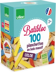 Træbyggesættet VILAC Batibloc color 100 er det ideelle valg til små byggere. De glatte brikker i livlige farver og natur udførelse er lette at stable og gør det muligt at skabe tårne, huse og fantasifulde konstruktioner. Takket være den universelle form lærer børn tålmodighed, balance og grundlæggende konstruktionsforståelse.