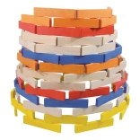 Sættet indeholder 100 solide, glatte brikker i natur og stærke farver – ideelle til tårne, huse og originale konstruktioner.