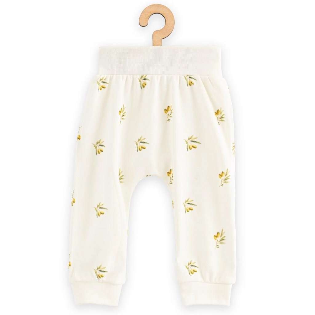Disse børnebukser er lavet af 100% økologisk (bio) bomuld, som er usædvanligt behagelig at røre ved og åndbar. Allover-printet med oliven giver et moderne look, mens de brede elastiske kanter i taljen og ved benene holder bukserne behageligt på plads uden at stramme.