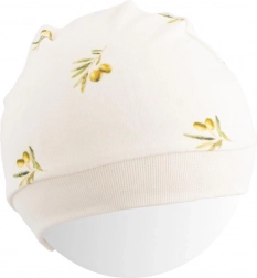 Blød ammehue i økologisk bomuld fra New Baby med olivenmotiv tilbyder skånsomhed for sensitiv hud, bred, ikke-klemmende kant og høj kvalitet. Et godt valg til både spædbørn og allergikere takket være OEKO-TEX STANDARD 100-certificering.