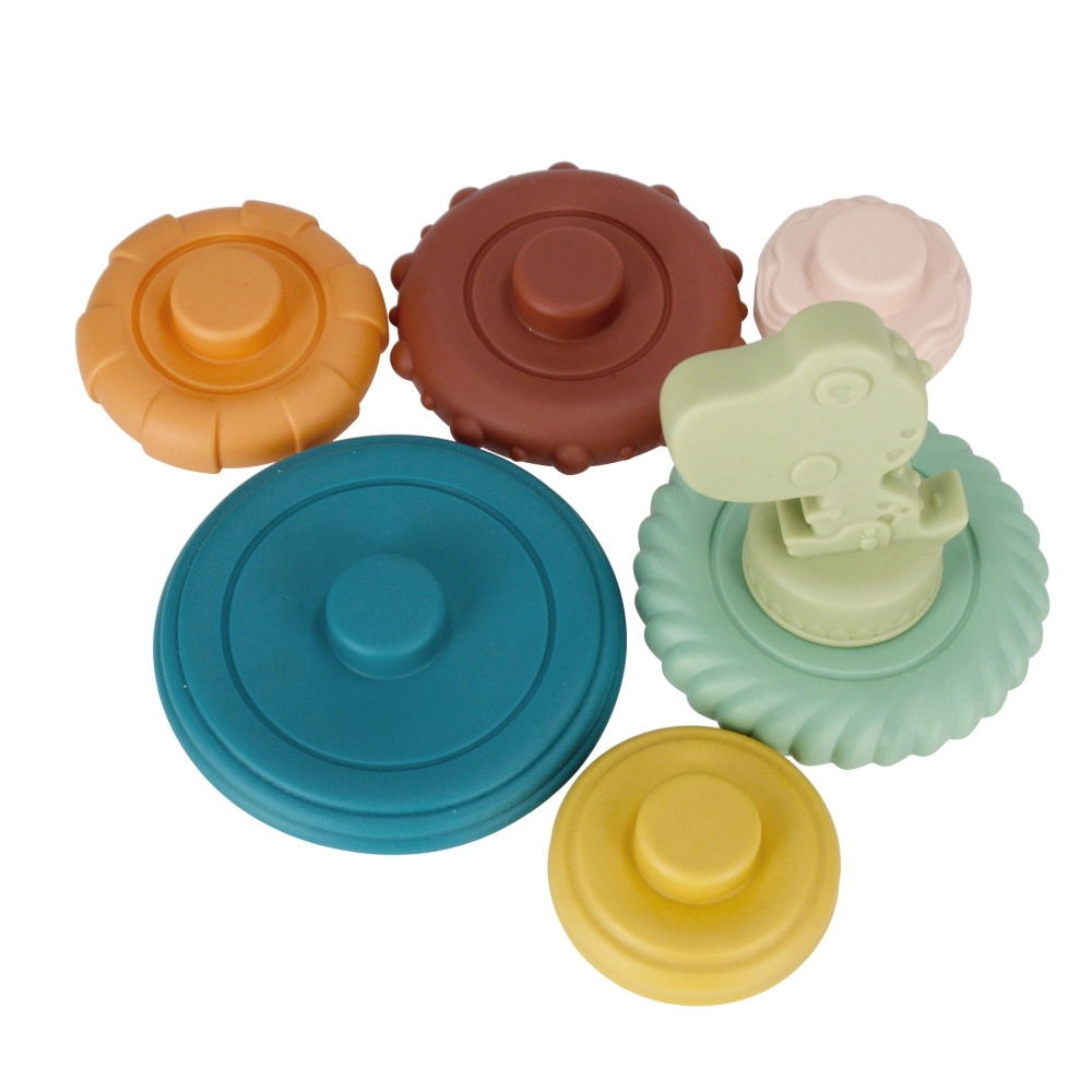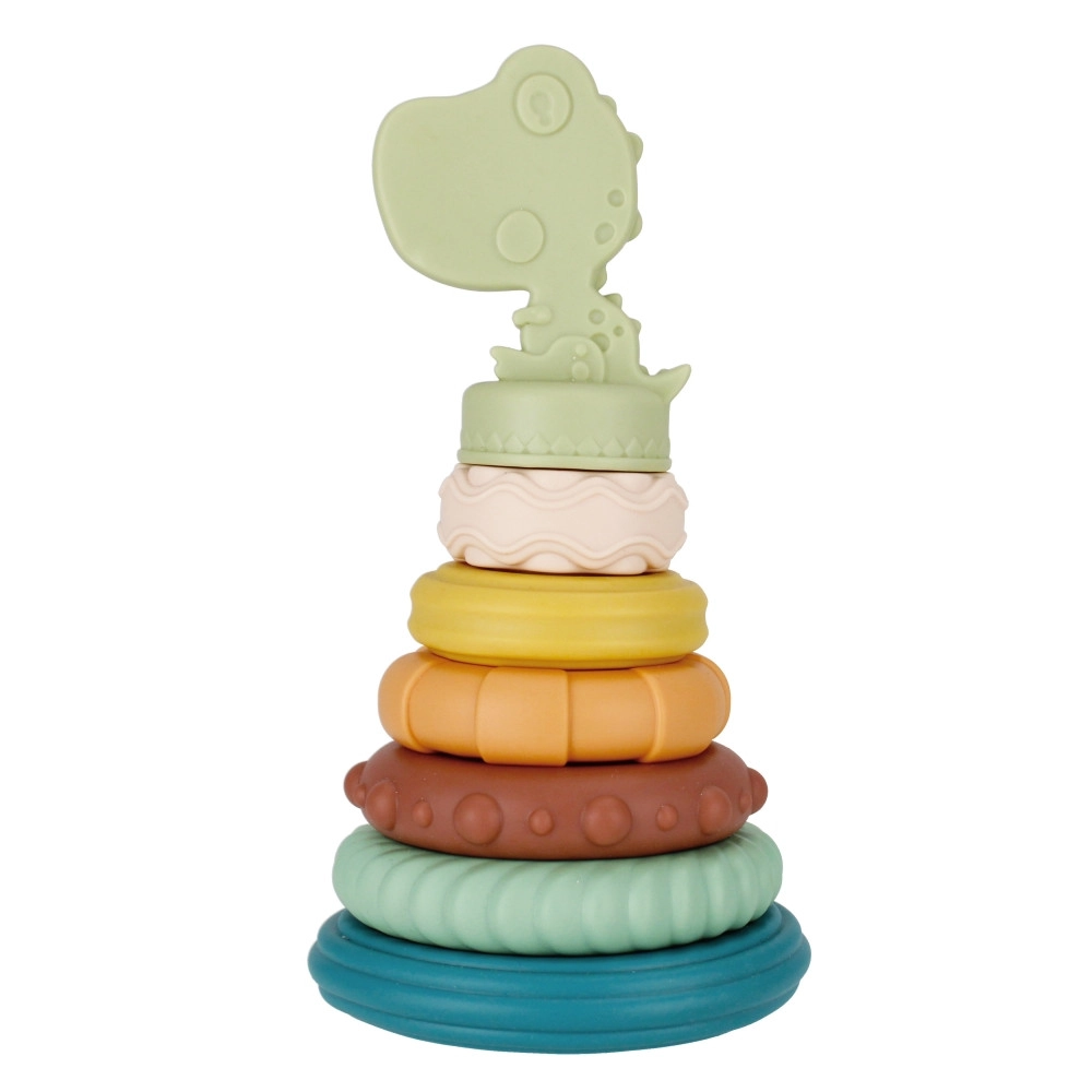 Den bløde fødevaregodkendte silikone er skånsom mod gummerne, nem at vedligeholde og modstandsdygtig til daglig brug. Den stabile base og den charmerende dinosaur på toppen giver legetøjet et attraktivt udseende og funktionalitet.