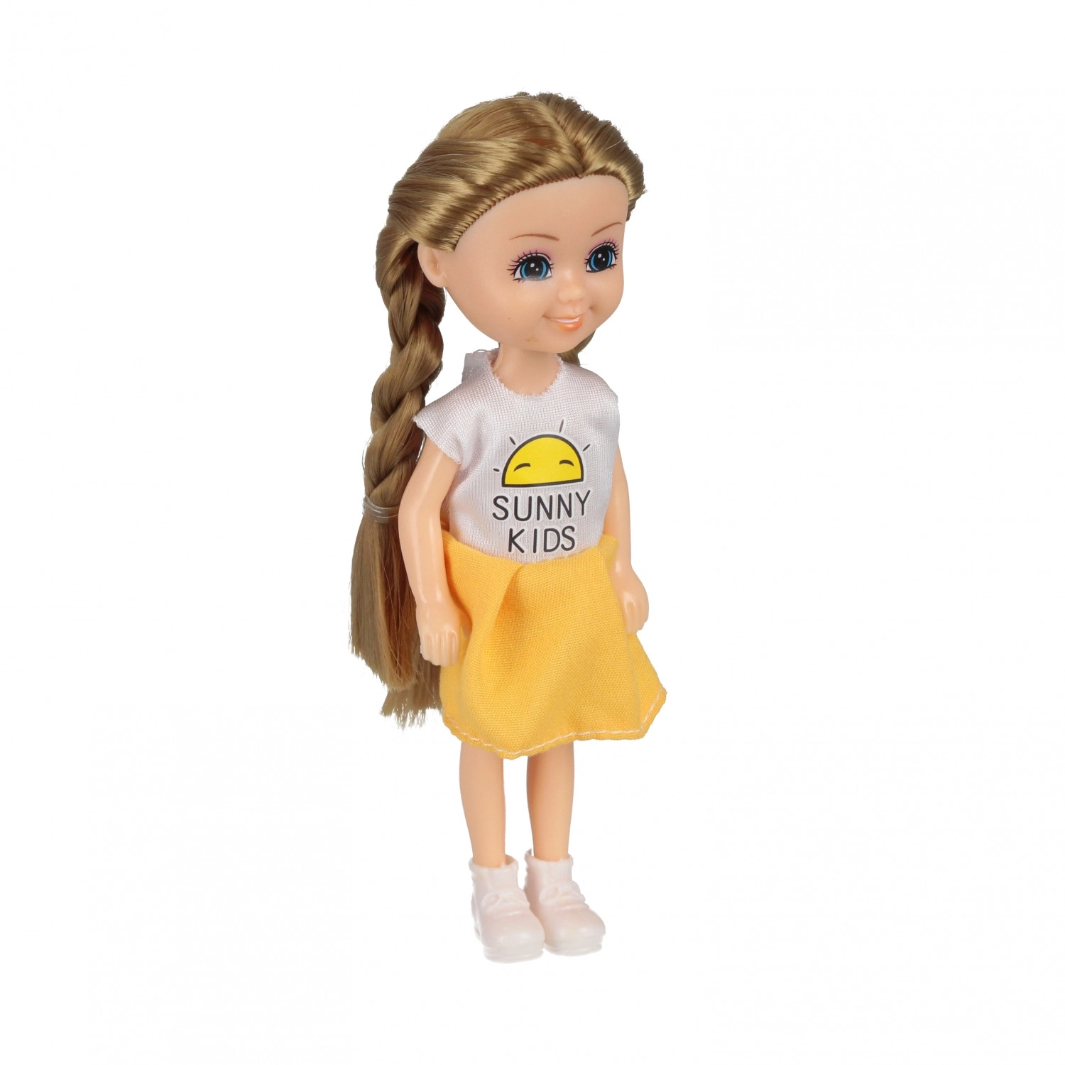 Dukken måler kun 15 cm, så den passer nemt i en lille håndtaske eller rygsæk, og børn kan have den med overalt.