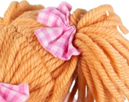 Dukken Eva er lavet af blødt og sikkert materiale, hvilket gør hende ideel til leg og nusse.
