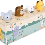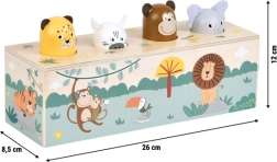 Denne holdbare træmusikboks med fire dyr er en fantastisk ledsager til de første opdagelser. Når børn trykker på dyrene, følger de de glade bevægelser af hovederne og hører realistiske lyde, hvilket på legende vis træner fingerfærdighed og styrker logisk tænkning.