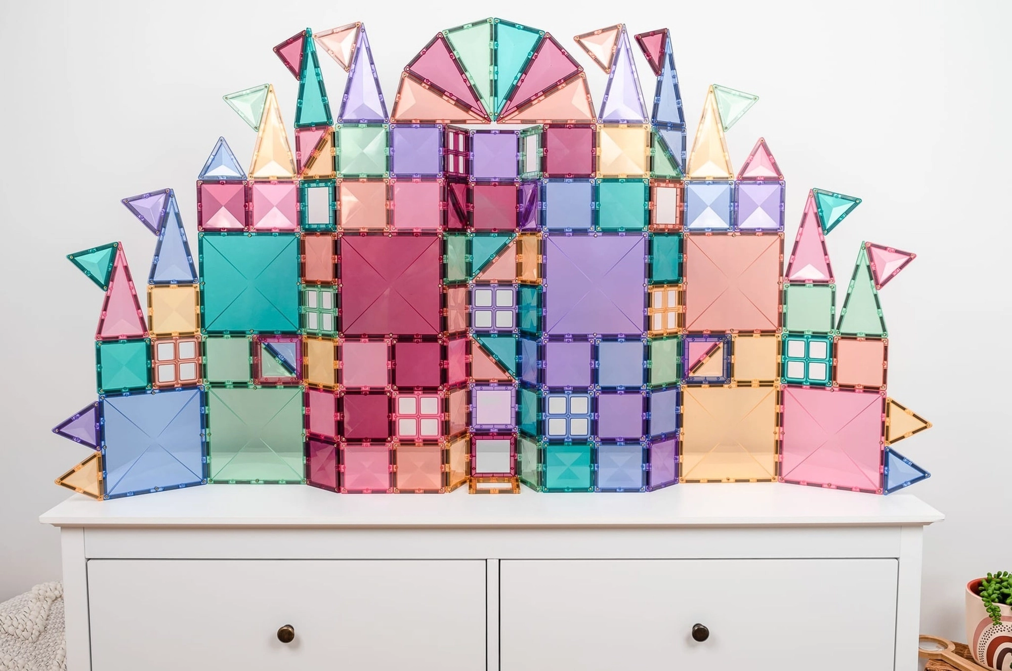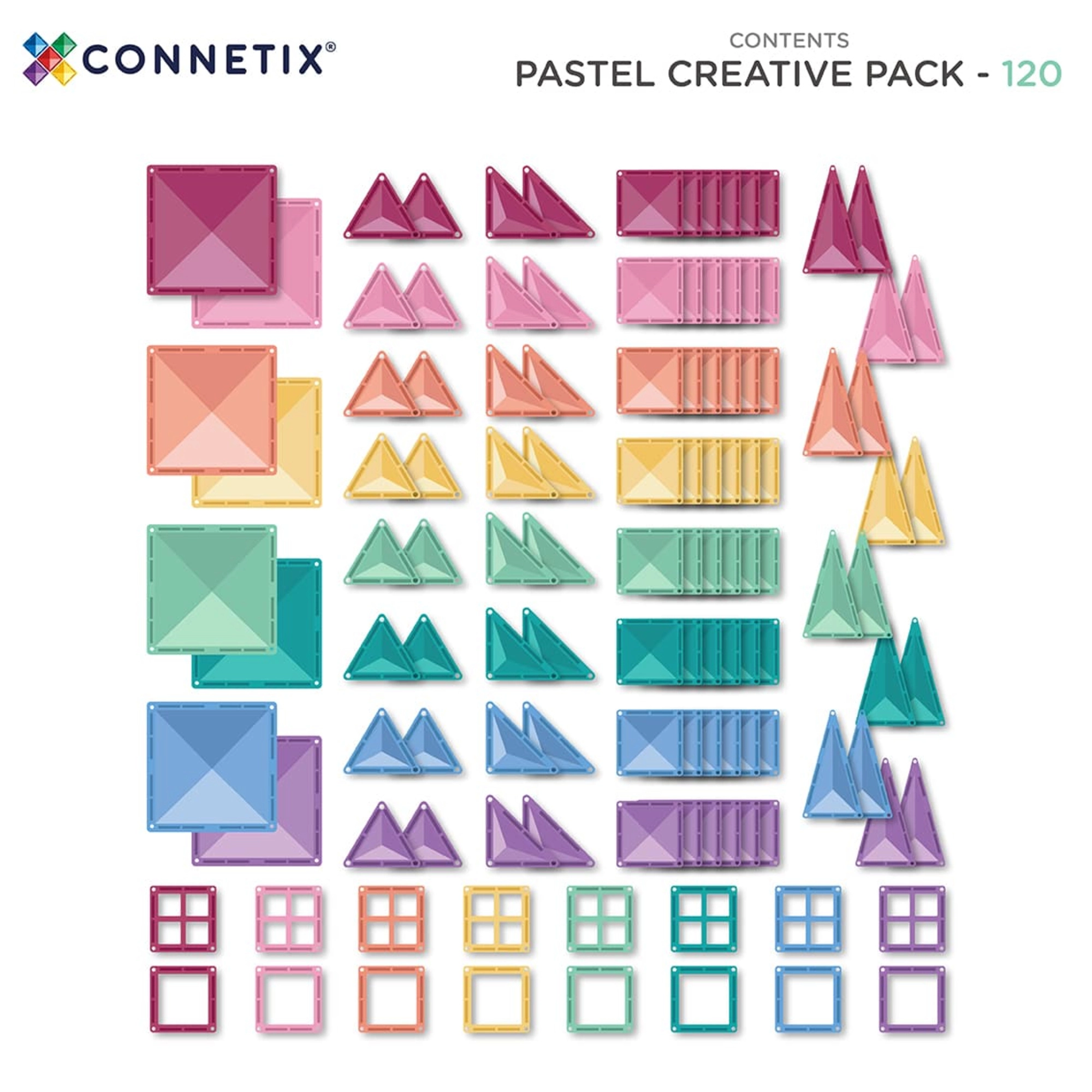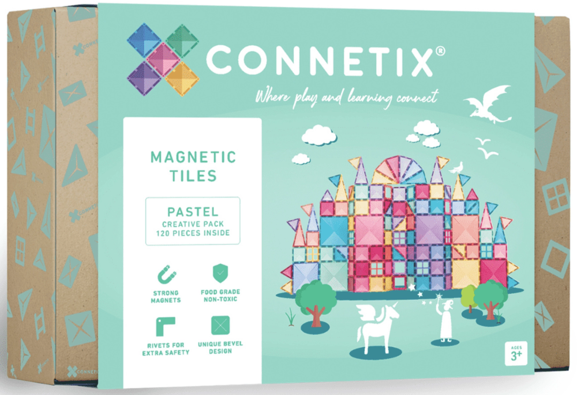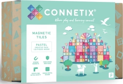 CONNETIX Pastel Creative Pack indeholder 120 gennemsigtige magnetfliser i blide pastelfarver til at skabe slotte, broer og futuristiske tårne. Takket være de stærke neodymmagneter tiltrækkes delene fra alle sider og danner stabile konstruktioner, som understøtter STEM/STEAM-færdigheder – fra fysikken bag magnetisme til rumlig geometri.