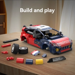 Karrosseriet i blå‑rødt racedesign med tryk og aerodynamiske elementer understreger det autentiske udseende af den ægte WRC‑special. Delene er kompatible med andre CaDA‑sæt, så du kan udbygge og tilpasse frit.