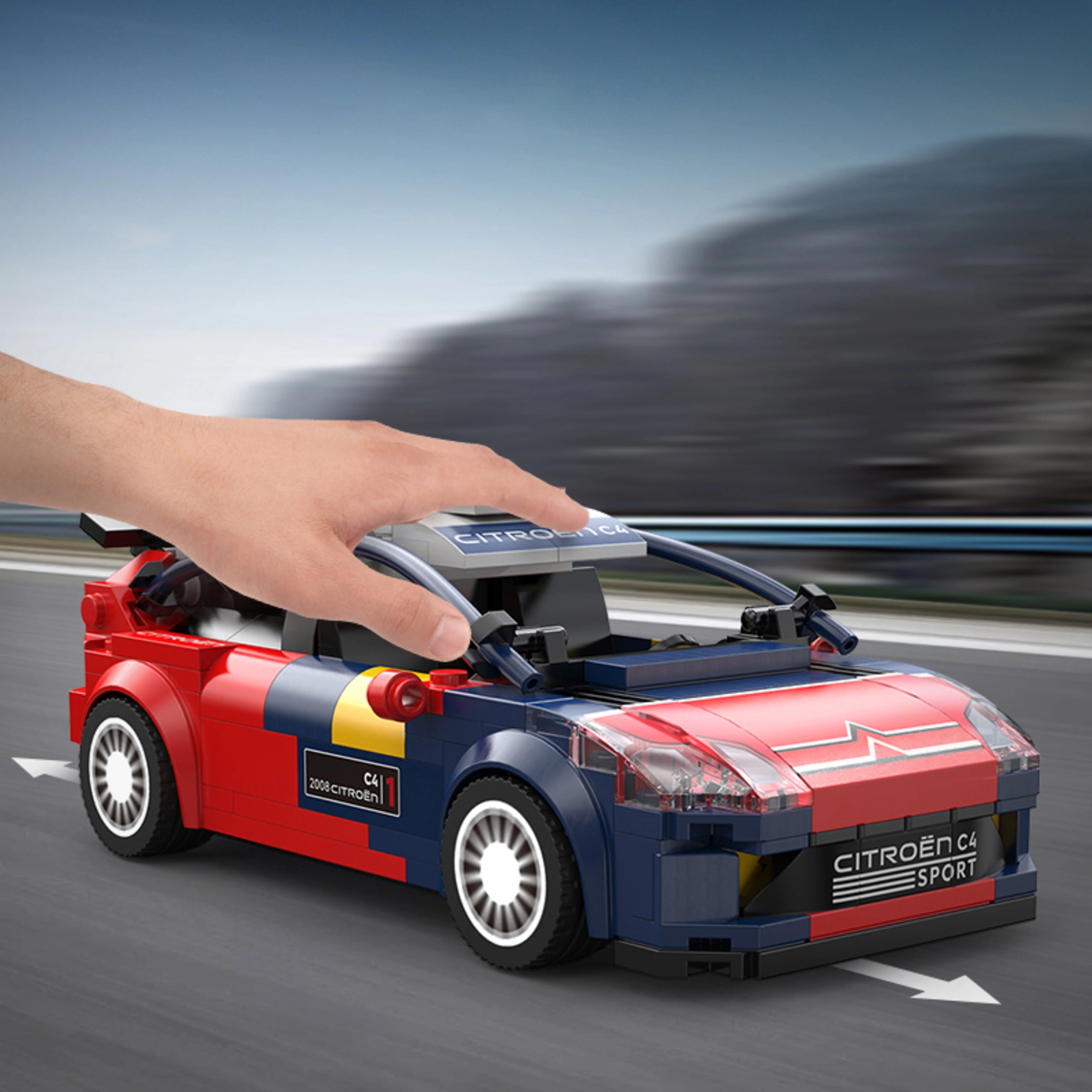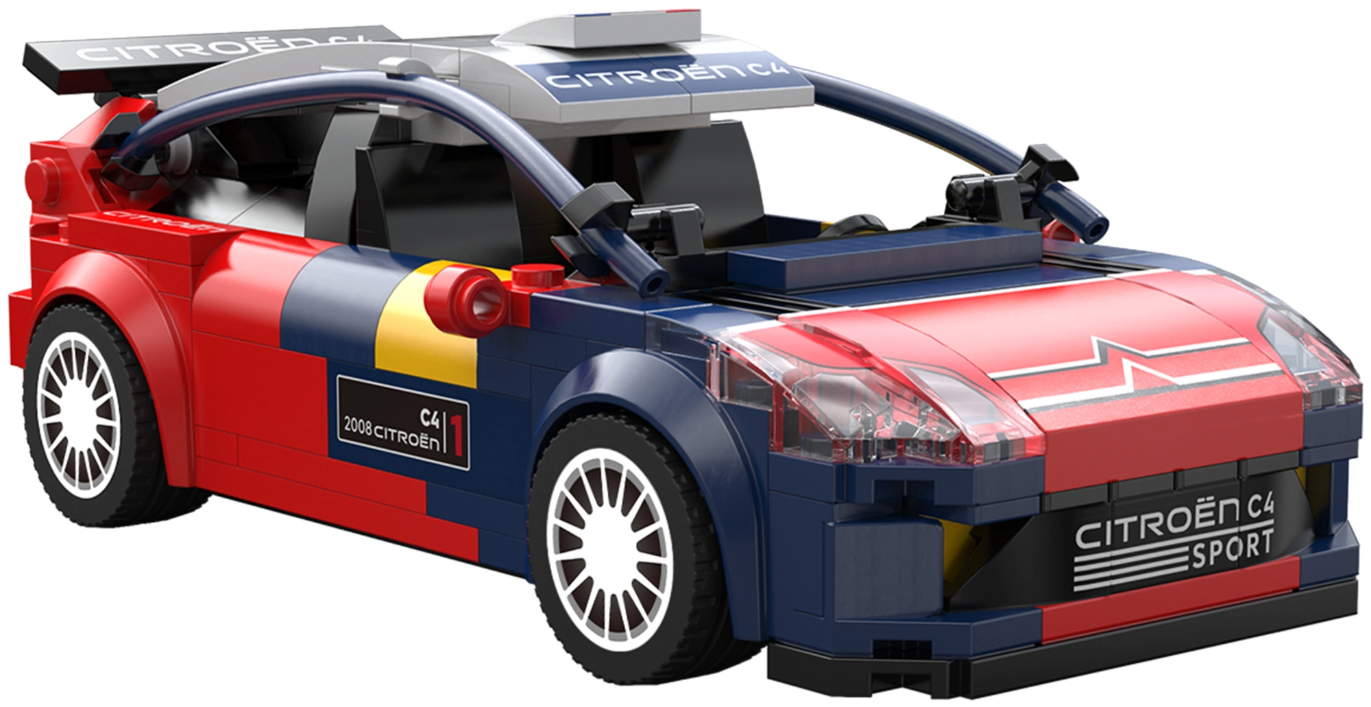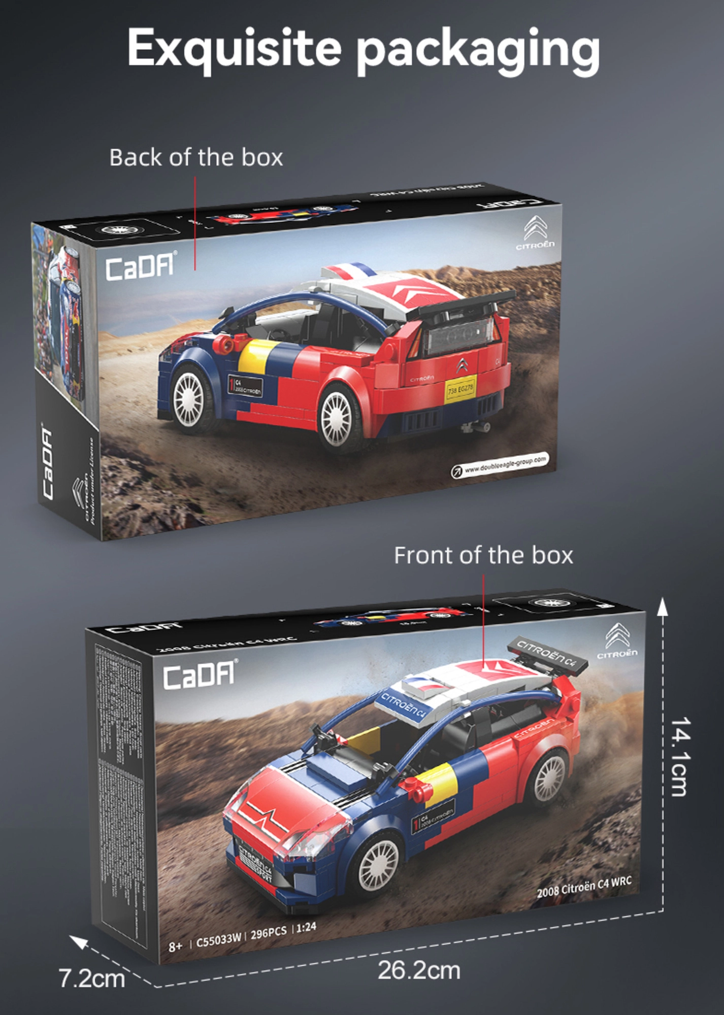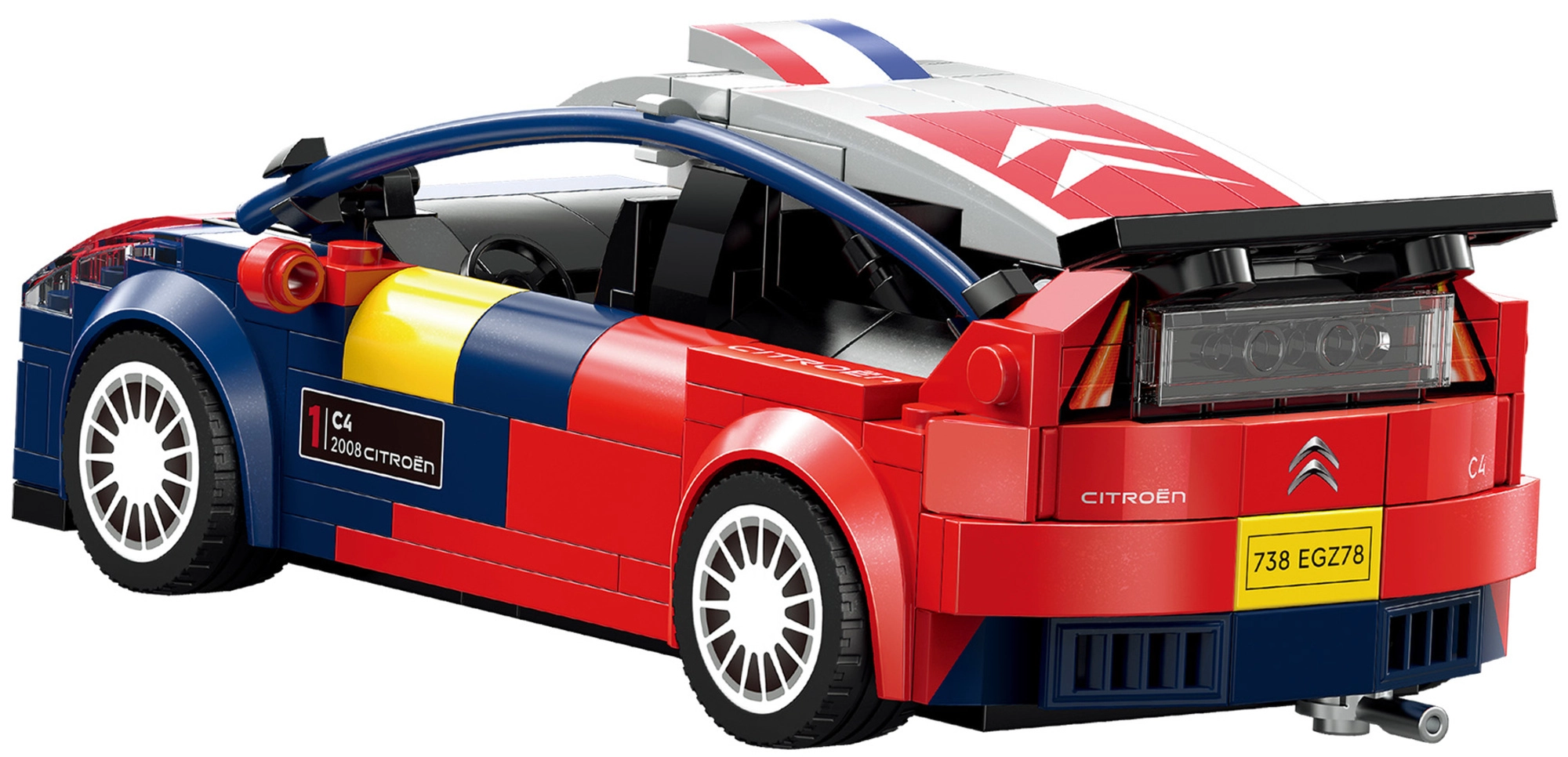 Nyd præcist byggeri og det imponerende look af den licenserede model CITROËN C4 WRC. CaDA-byggesættet byder på en velafbalanceret kombination af let bygning og fremragende forarbejdning, hvilket resulterer i en statisk model med jævn rulning, klar til udstilling og leg på plane overflader.