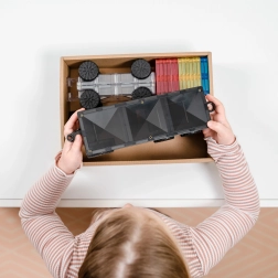 Leg med Connetix udvikler naturligt STEAM-færdigheder: børn udforsker principperne for magnetisme og fysik (balance, stabilitet), lærer geometri (2D/3D-former, symmetri, mønstre) og træner logisk tænkning, problemløsning og finmotorik. Sikre materialer uden BPA og ftalater, glatte afrundede kanter og solid nitning af magneterne sikrer rolig og langvarig leg.
