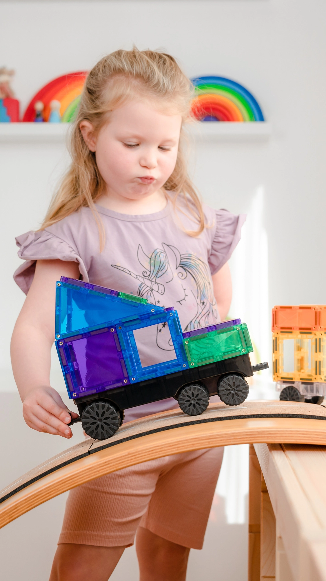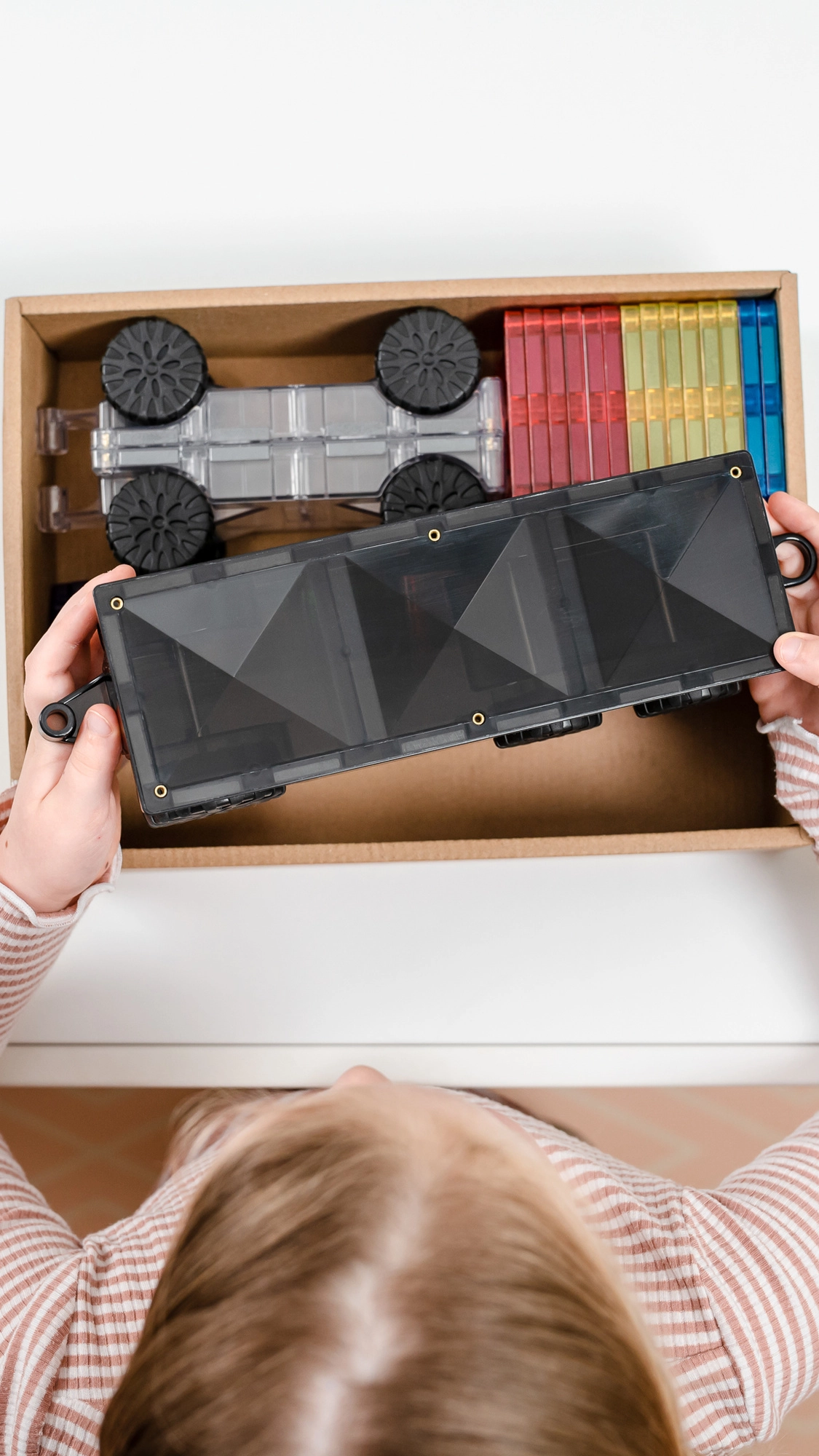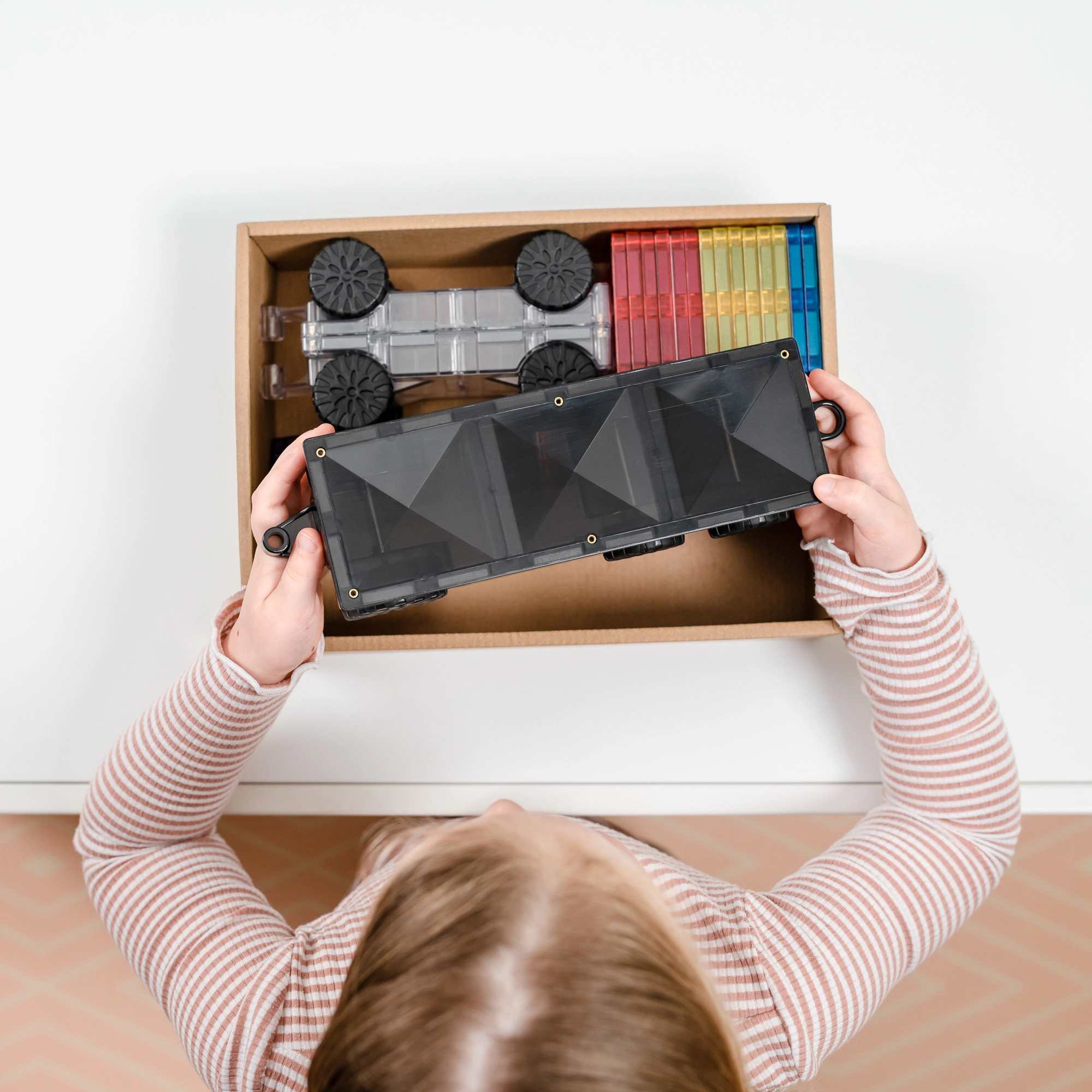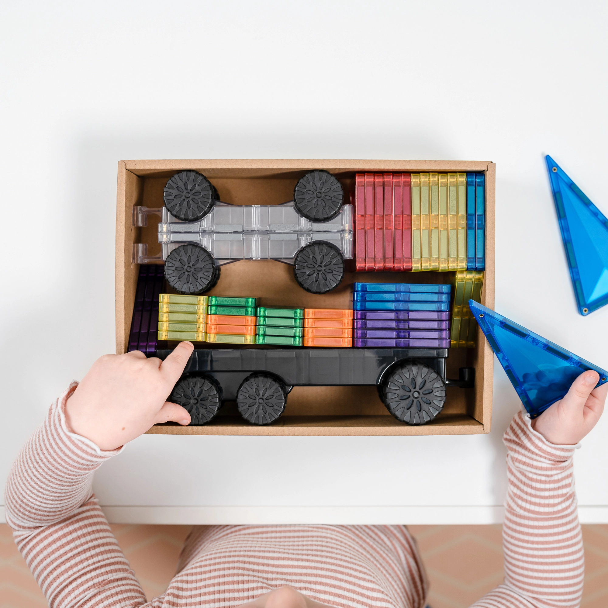 Sættet Connetix Rainbow Transport Pack giver den perfekte start på magnetisk byggeri. Med robuste neodymmagneter, der tiltrækker fra alle sider, opstår stabile modeller – fra lastbiler og tog til futuristiske konstruktioner. De klare, farvemættede indlæg i kvalitets-ABS glæder i lyset og tåler krævende børneleg.