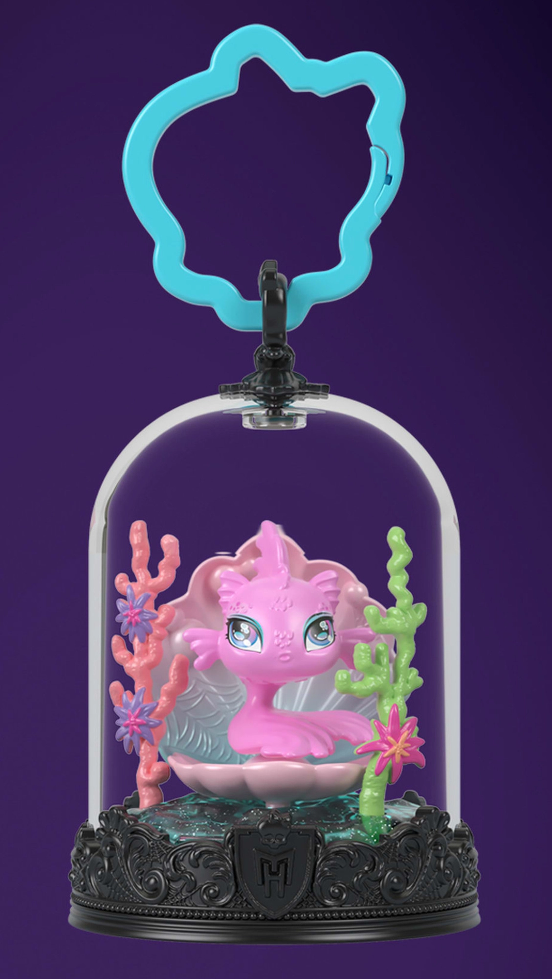Træd ind i MONSTER HIGHs magiske minisunivers. Sættet med figuren Neptuna – veninden til LAGOONA BLUE – leveres med et gennemsigtigt “terrarium-hus”, hvor du kan placere tematiske dekorationer og skabe en unik undervandsscene. Sæt derefter kuplen på, fastgør klipsen, og dit kæledyr kan rejse trygt med dig overalt.