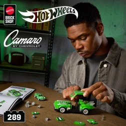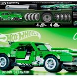Byggesættet er ideelt for samlere og større børn, der ønsker at tilpasse modellen yderligere. I æsken finder du et ark med klistermærker og to sæt fælge til at ændre stilen. Der medfølger en eksklusiv HOT WHEELS metalplade og en mini metalmodel 1:64, som løfter din samling.