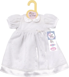 Den praktiske velcrolukning gør det let for børn at klæde på uden hjælp fra voksne. Kjolen er kompatibel med dukker fra BABY BORN og BABY ANNABELL (ca. 39–46 cm). Sættet indeholder også en plastbøjle, så kjolen nemt kan hænges i børnenes garderobe.