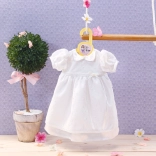 Disse søde hvide kjoler forvandler enhver dukke til en lille prinsesse. Det fine stof med dekorativt mønster, den diskrete sløjfe i taljen og satinkanterne giver et tidløst elegant udtryk. Takket være solidt håndværk og kvalitetsmaterialer holder kjolen til masser af leg.