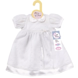 Elegante hvide kjoler til dukker i størrelsen 39–46 cm fra kollektionen DOLLY MODA fra mærket ZAPF CREATION. De har et klassisk snit med krave, korte puffærmer og fin broderi. Nem påklædning sikres af lukning med velcro. Et plastbøjle medfølger. Ideelle til festlige lege – dåb, familiefester og fotografering.