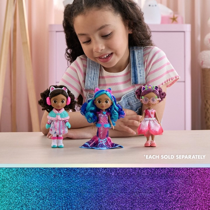 Oplev den magiske verden fra serien Gabbys kattehus med den søde dukke Sweetest Gabby og vintertilbehør. Dukken har bevægelige arme, ben og hoved, måler ca. 13 cm og er ideel til små fans fra 3 år. En fantastisk gave til dem, der elsker eventyr og sjov med seriens helte.