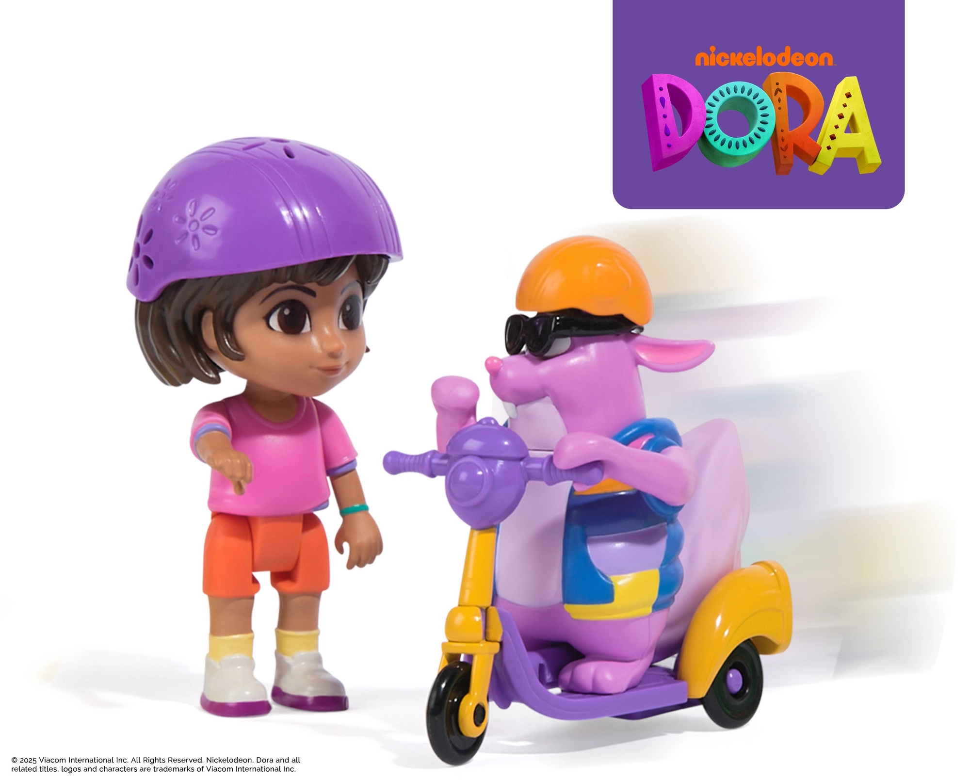 Legesættet “Zoom & Explore” fra Spin Master er inspireret af den populære serie DORA. Børn vil elske de klare farver, de søde figurer og muligheden for at skabe deres egne eventyr. DORA bærer sit karakteristiske serie-outfit, Tico stråler i pink nuancer og briller – og begge er klar til at tage på løbehjul mod nye oplevelser.