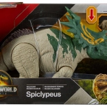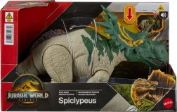 Den realistiske Spiclypeus-figur fremstiller en imponerende rovdinosaur med en muskelstærk, atletisk krop og detaljeret rustning med pigge. Den grågrønne farve med let glans og mærkbar skæltekstur understreger filmudtrykket og gør den til et perfekt samlerstykke for alle JURASSIC WORLD-fans.