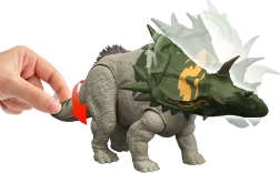 Aktivér dinosaurbrøl via halen, bevæg kæber og forben, og brug den roterende hale til kraftfulde angreb. Den højt artikulerede konstruktion gør det muligt at indstille kampstillinger til scener og dueller. Scan sporingskoden på figurens ben i den gratis Jurassic World Play-app (Android/iOS) og lås op for AR-indhold, løb på land, i vand og i luften.